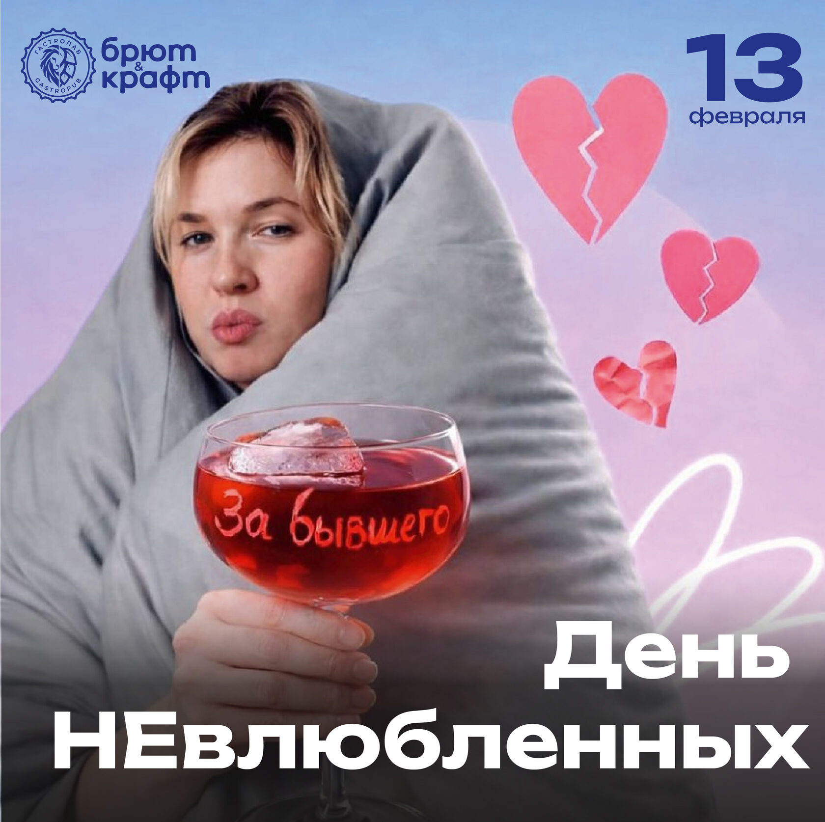 13 февраля. День НЕвлюбленных в «Брют&Крафт»!